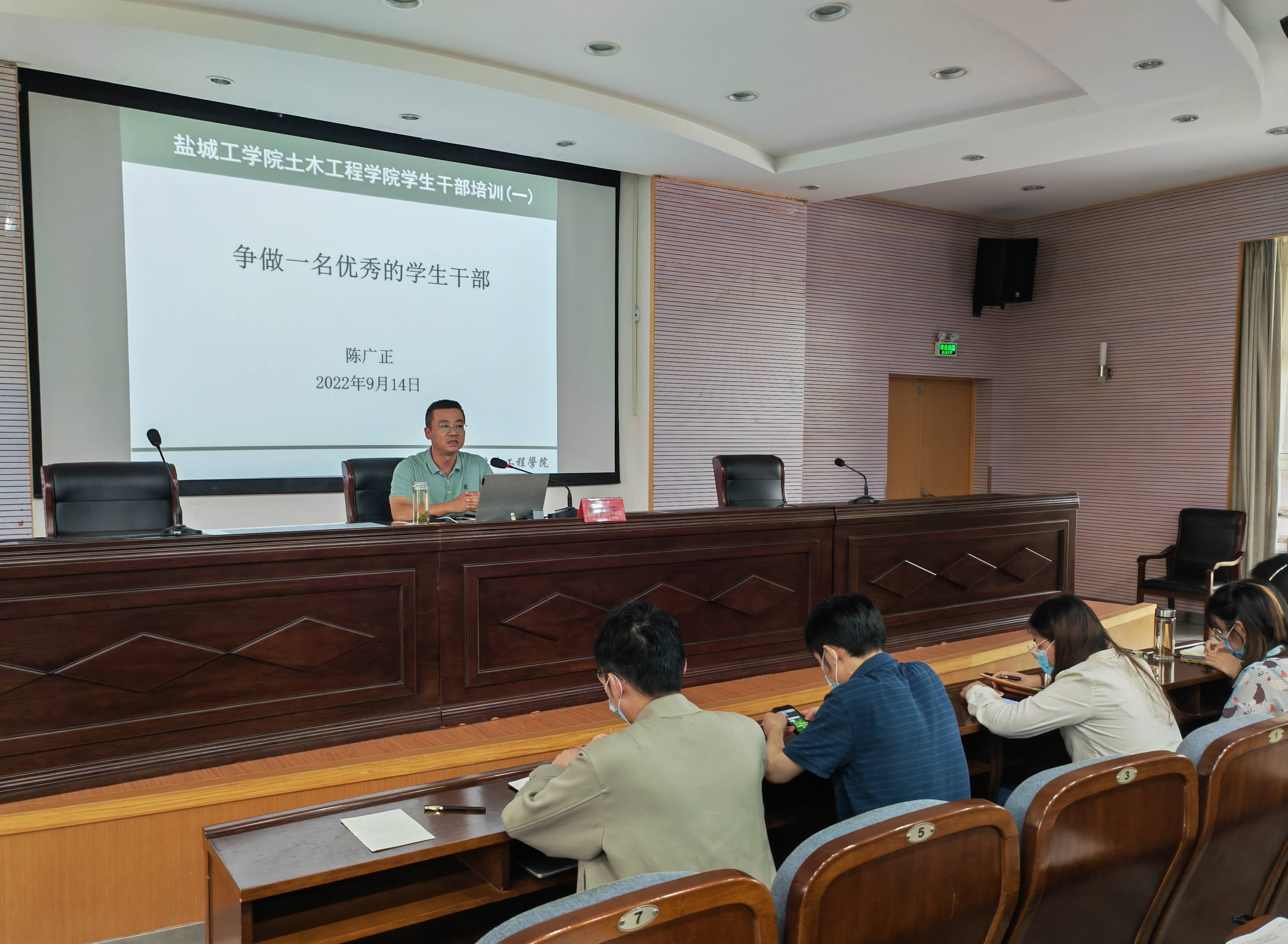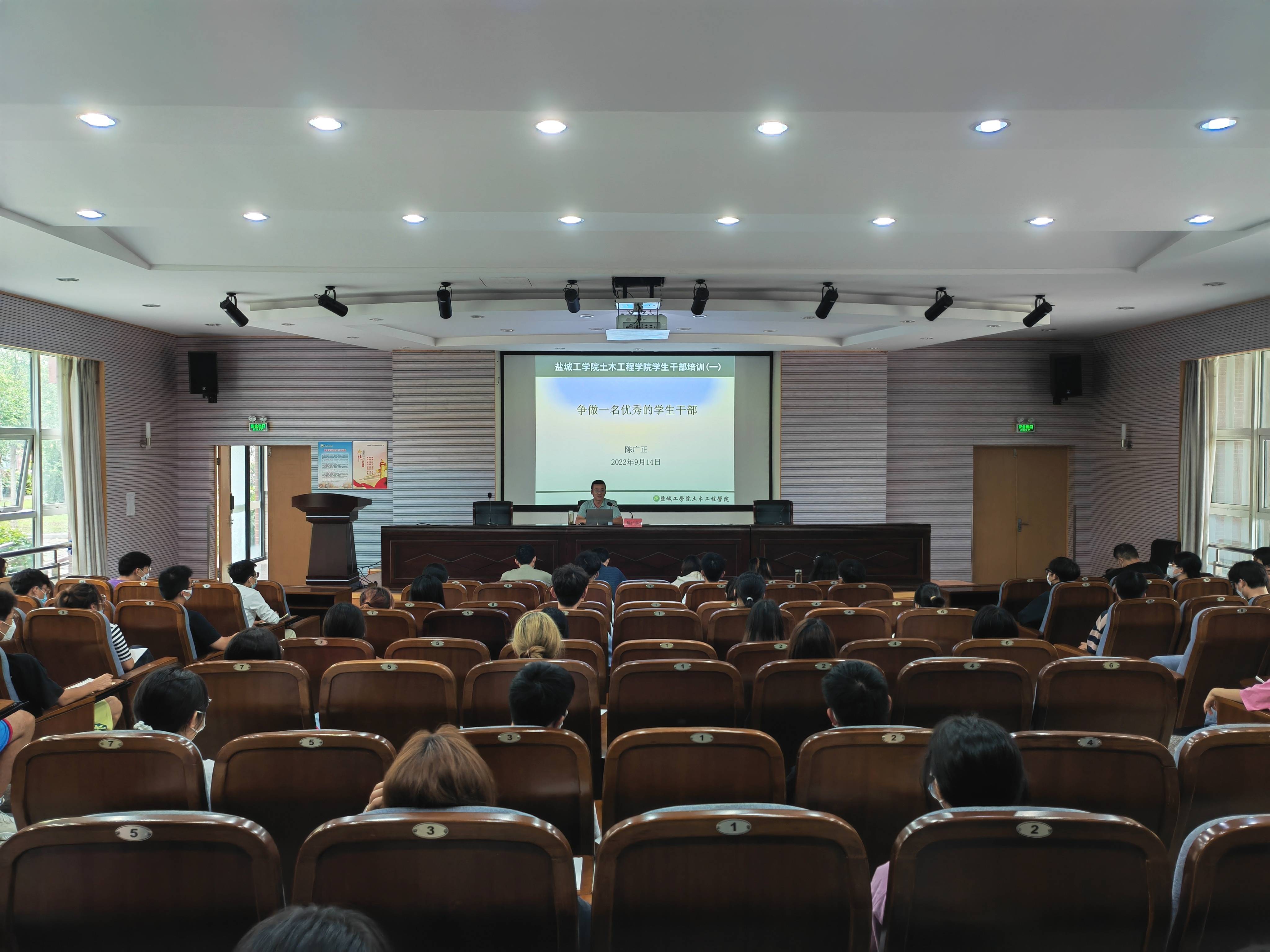 为提高土木工程学院学团干部的基本素质和能力,加强学团的内部建设,9月14日下午,土木工程学院学生干部培训会在土木馆报告厅开展,培训会由学院党委副书记陈广正主讲,学工办负责人徐传洪、团委副书记徐佳、全体专职辅导员和学院第五届学团全体学生干部参加。