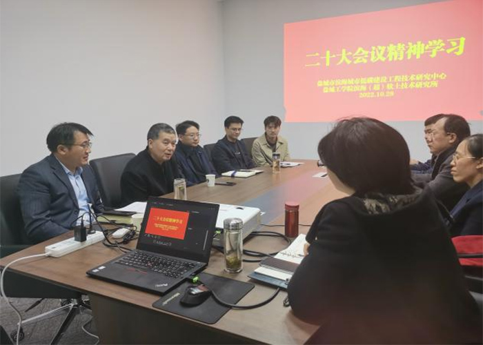10月29日下午我院滨海(超)软土技术研究所(盐城市滨海城市低碳建设工程技术研究中心)在盐龙湖先进技术研究院召开党的二十大精神专题学习会,会议邀请了盐城市心理健康服务协会秘书长、盐城工学院教授卞保武解读会议精神。会议由滨海(超)软土技术研究所所长徐桂中主持,滨海(超)软土技术研究所十余名教师与研究生参加了专题学习。