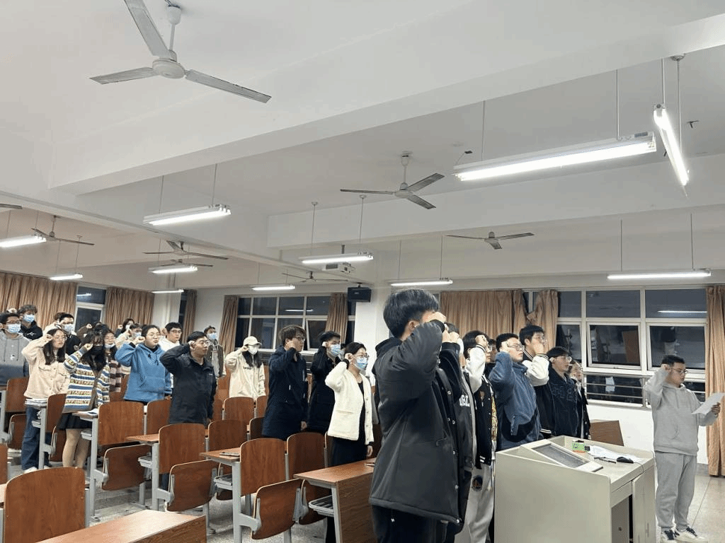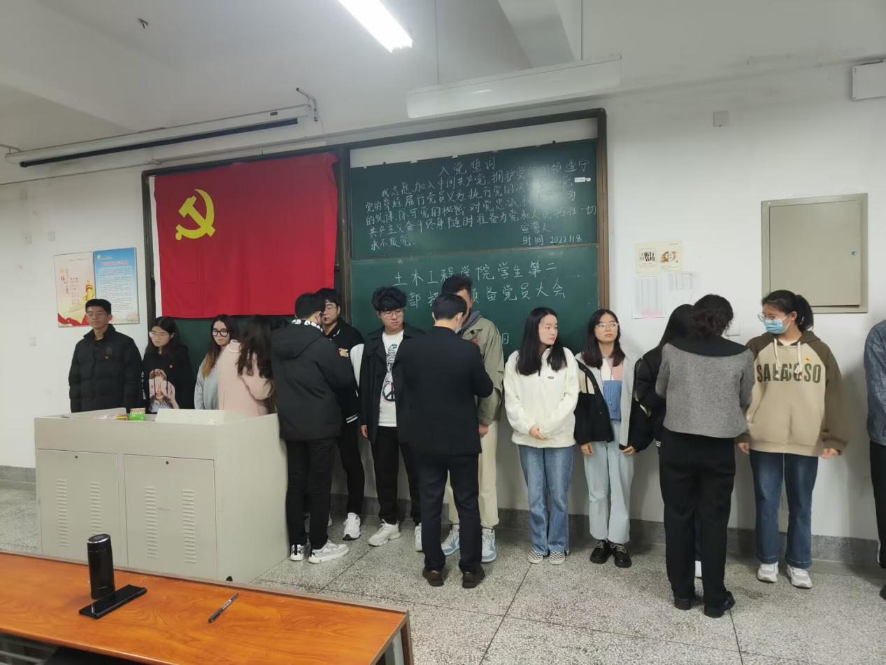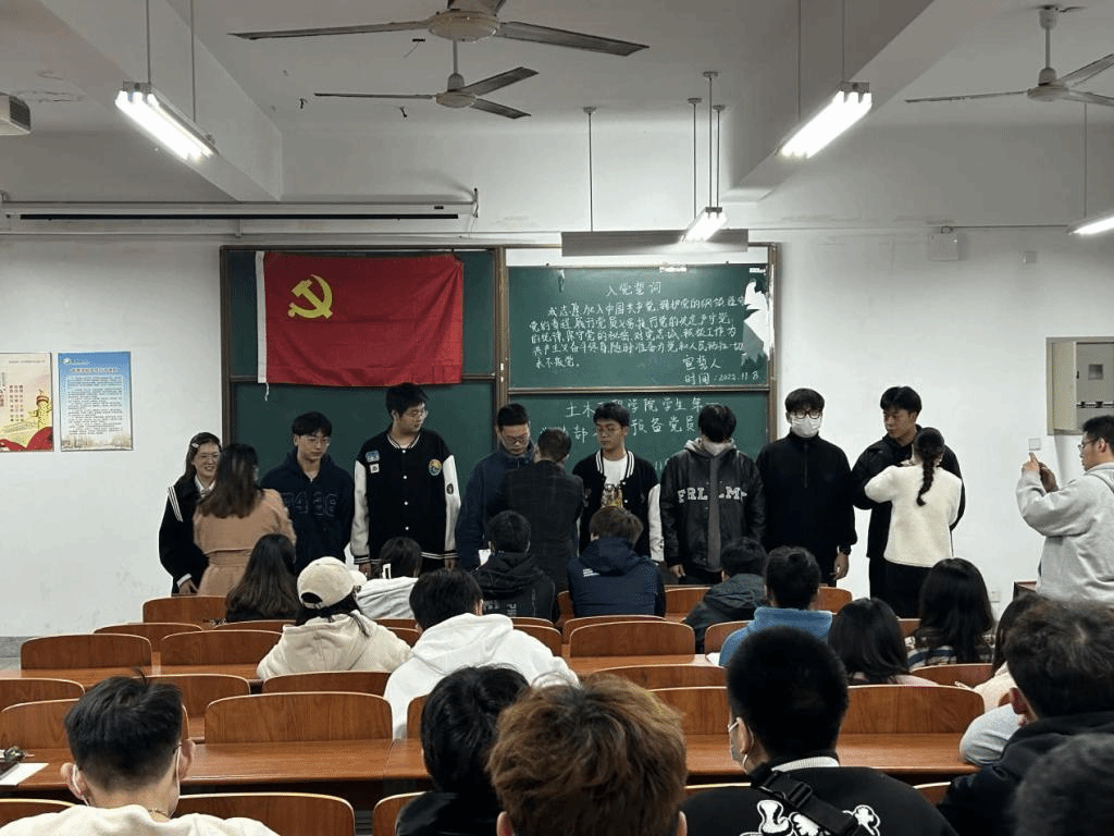 首先,吕骏豪等23名发展对象逐一汇报本人自确定为入党积极分子以来的思想、学习、工作情况,以及入党动机和加入中国共产党的迫切愿望。其次,入党介绍人对每位发展对象学习、工作、生活等方面进行考察汇报,并表明态度;随后,支部党员充分讨论,并发表意见;经与会正式党员逐一投票表决,大会一致同意接收吕骏豪等23名同志成为中共预备党员。最后,党支部向23名预备党员授予党徽,党支部书记带领大家在党旗下进行了光荣的宣誓仪式。