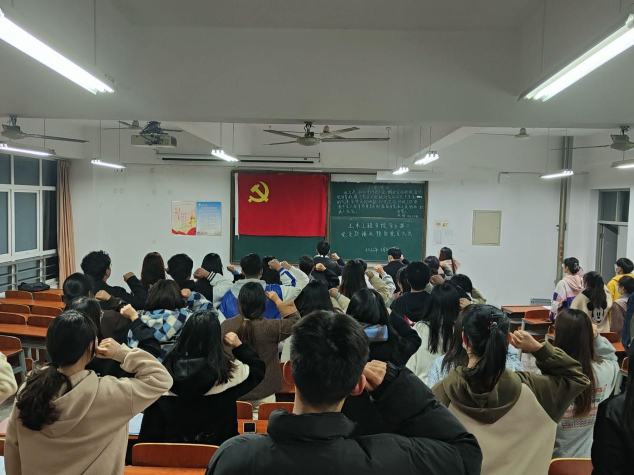 11月8日晚,土木工程学院学生第一、二党支部关于接收吕骏豪等23名发展对象为预备党员会议在土木馆教室A101和A201顺利召开,此次会议采用线上和线下的形式同步进行。会议由学生第二党支部书记、团委副书记徐佳和学生第一党支部书记、学工办负责人徐传洪主持,党委副书记陈广正,学生党支部全体党员及本次发展对象参加。