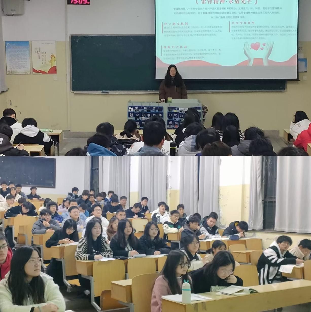 3月1日,B土木221-224班,B给排水221-222班,D工管221和S工管221-222班集中观看了电影《雷锋在1959》,电影讲述雷锋从鞍山来到辽阳弓长岭焦化厂投身建设142天发生的故事。通过观影让同学们切身体会雷锋的感人事迹,感悟雷锋精神,B土木221班徐熠飞说道:“雷锋用火一样的青春,燃烧着自己,温暖着别人。雷锋精神是一面永不褪色、永放光芒的旗帜,我们要永远将这种精神传承下去。”