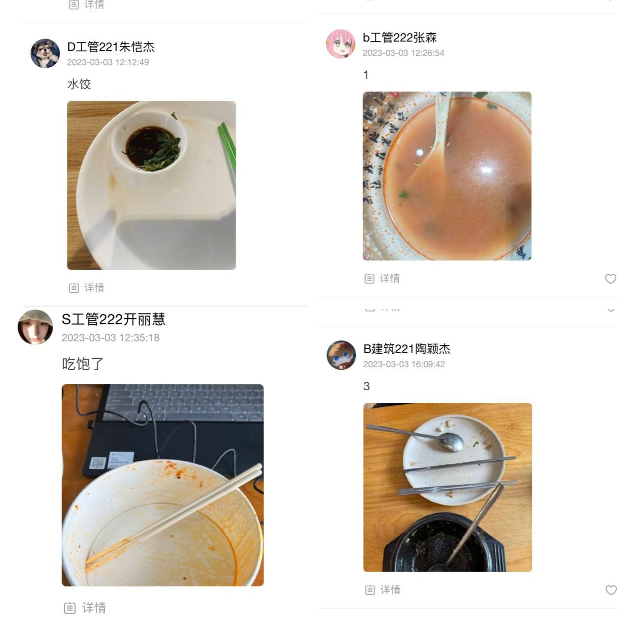 3月1日-4日,土木工程学院所有学生在微信小程序“小打卡”进行“光盘打卡,青年一起向未来”主题打卡,同学们积极响应,每日在线上分享自己的光盘行动。通过光盘行动,让同学们养成了良好生活习惯,更加懂得了艰苦朴素、勤俭节约的可贵,是任何时候都要保持发扬的传统,也更加坚定了学习雷锋乐于助人的精神。