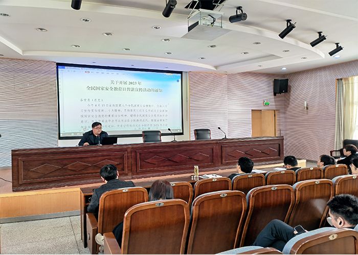 随后,谷伟传达了学校《关于开展2023年全民国家安全教育日普法宣传活动的通知》精神,领学了习近平总书记关于总体国家安全观的重要论述,讲述了深入开展国家安全法制宣传教育工作的重大意义,并指出全院上下要坚持以习近平新时代中国特色社会主义思想为指导,深入学习贯彻习近平法治思想,始终坚持总体国家安全观,统筹学院的发展和安全。