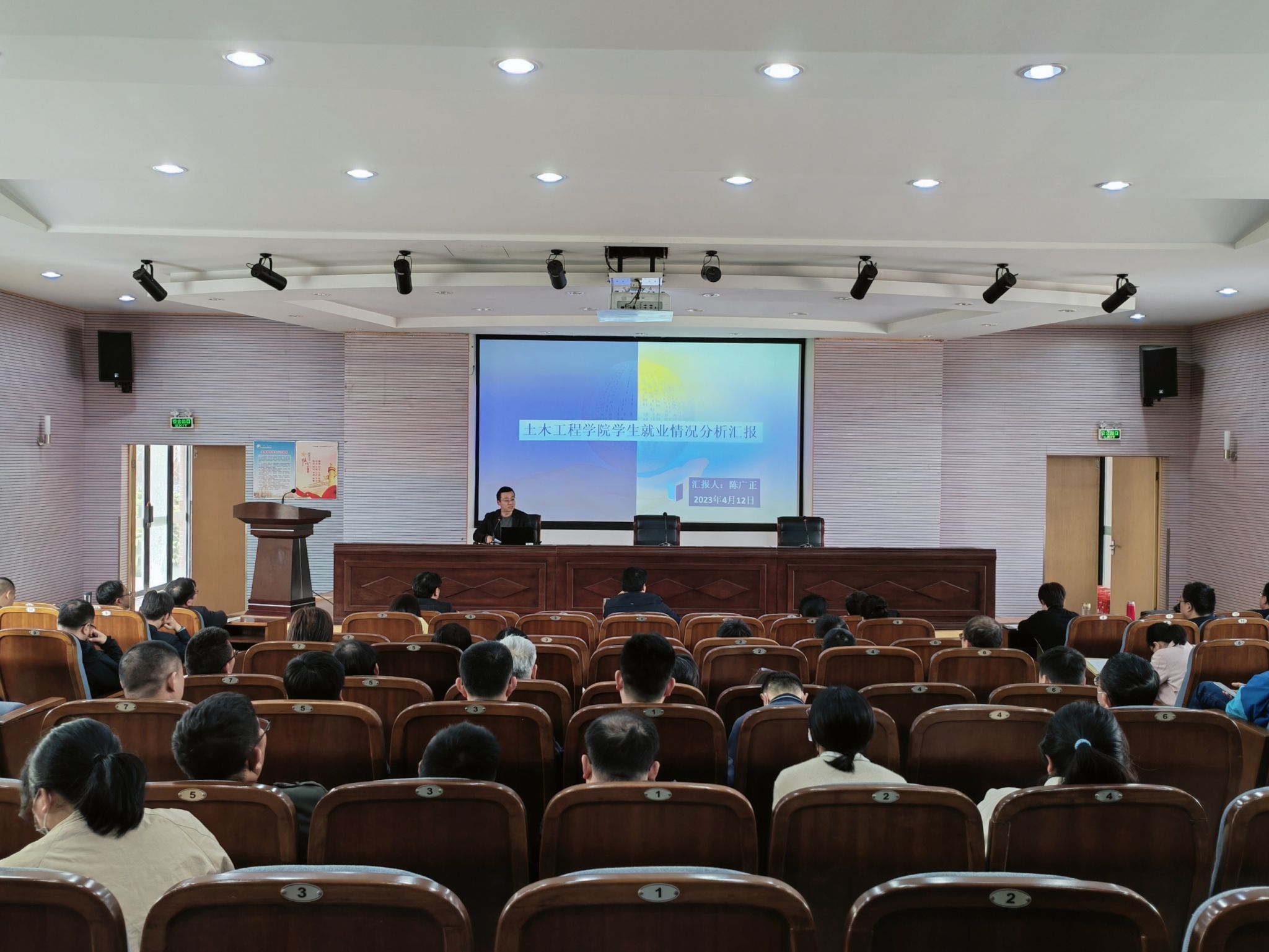 为进一步做好2023届毕业生就业指导与服务工作,实现更加充分更高质量的就业,4月12日下午,土木工程学院在土木馆报告厅召开就业工作专题会议,院党委书记谷伟作重要发言。会议由院党委副书记陈广正主持,学院党政领导班子、全体教职工参加会议。