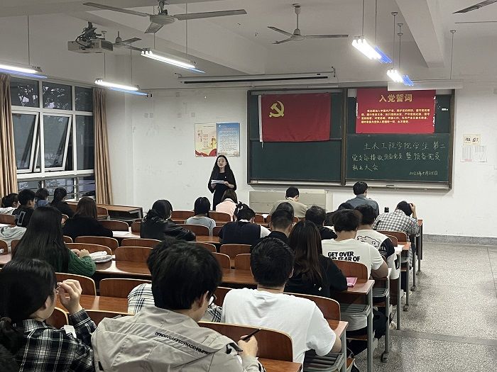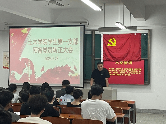 5月25日晚,土木工程学院学生第一、二党支部在土木馆A101、A201教室分支部召开接收预备党员暨预备党员转正支部大会。会议由学生第一党支部书记、学工办负责人徐传洪和学生第二党支部书记、团委副书记徐佳主持,党委副书记陈广正,学生党支部全体党员参加。