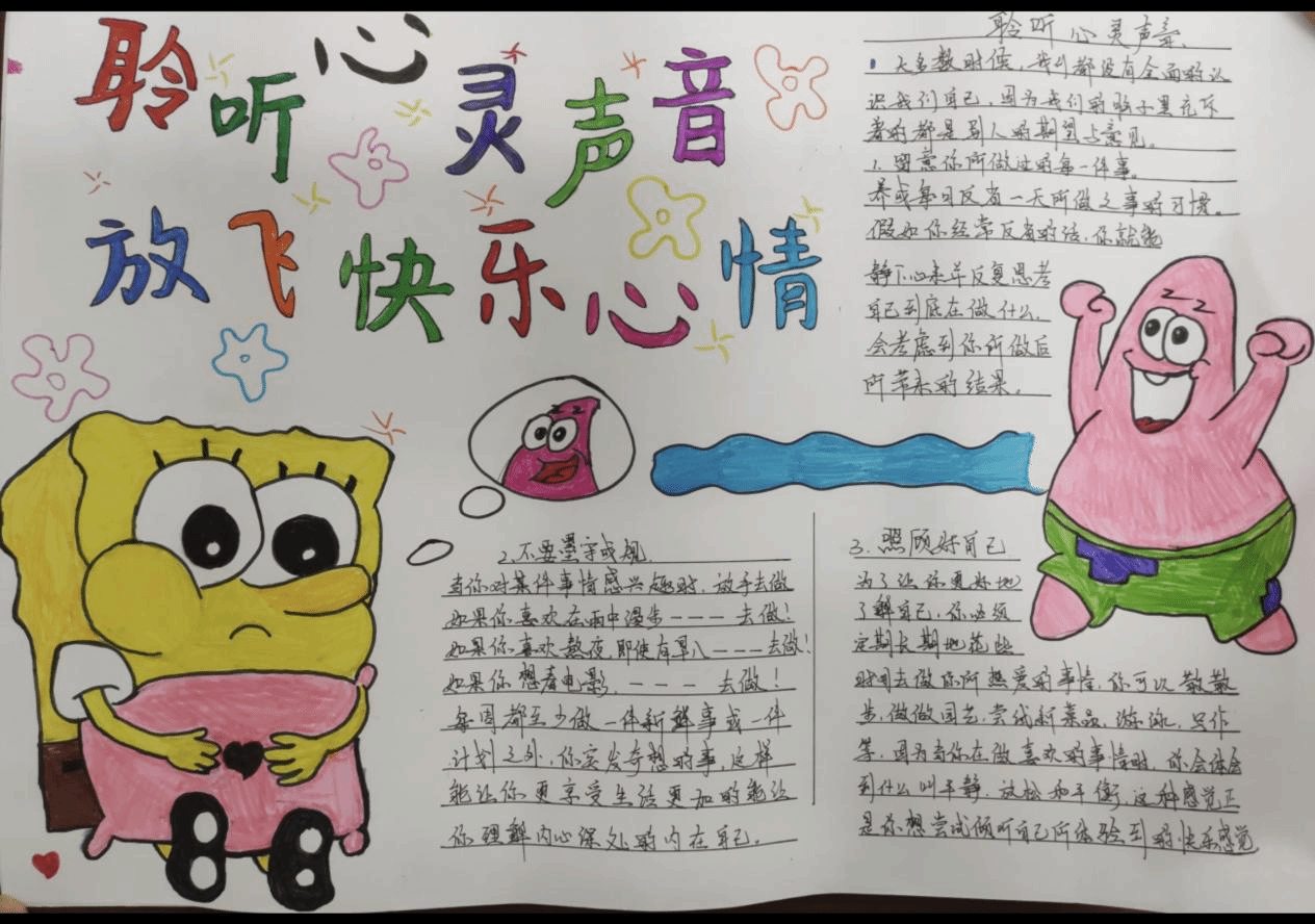 本次活动包括“画解心情”心灵手抄报设计、“快乐心语”卡制作、“心灵轨迹”校园快乐慢跑三个部分。通过丰富多样的心理健康教育实践活动,引导同学们聆听心灵声音,抒发内心真情实感,有力提升了学生心理素养,广泛传播了心理健康知识。