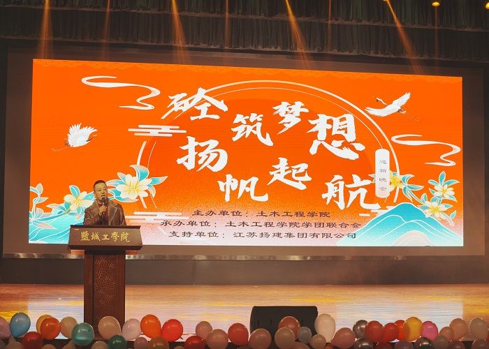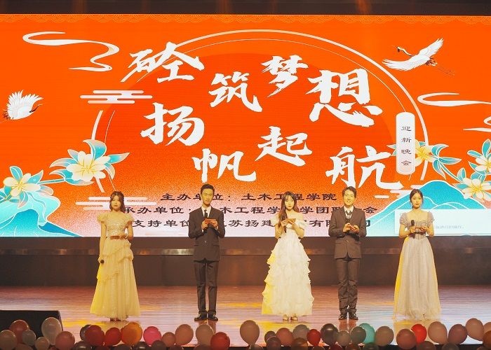 为丰富“一站式”社区学生课余文化生活,欢迎2023级新生加入土木工程学院大家庭,12月3日晚,由土木工程学院主办、江苏扬建集团有限公司协办的“砼筑梦想 扬帆起航”2023年迎新晚会在希望大道校区行政楼报告厅上演,学院党委副书记陈广正、全体辅导员、全体2023级新生、高年级学生代表等700余人参加。