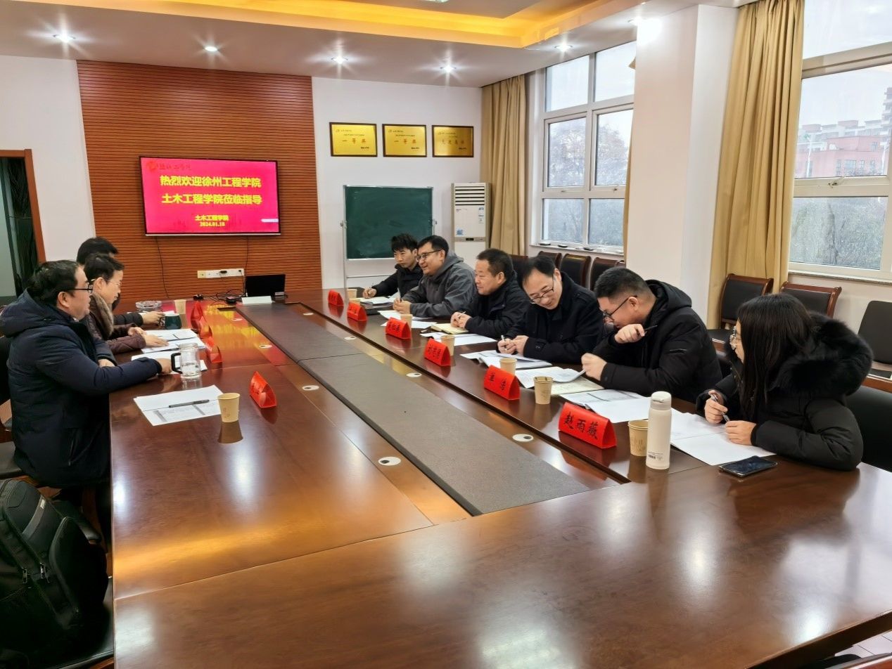 2024年1月18日,徐州工程学院土木工程学院副院长夏红春、土木工程系主任陈贵武、地下工程系主任于洋及相关专业教师一行六人到学院考察交流,交流会在土木馆A206会议室进行,学院副院长李富荣、教科研办公室主任程鹏环、地下工程系主任殷勇、力学教研部主任蔡中兵参加会议。会议由副院长李富荣主持。