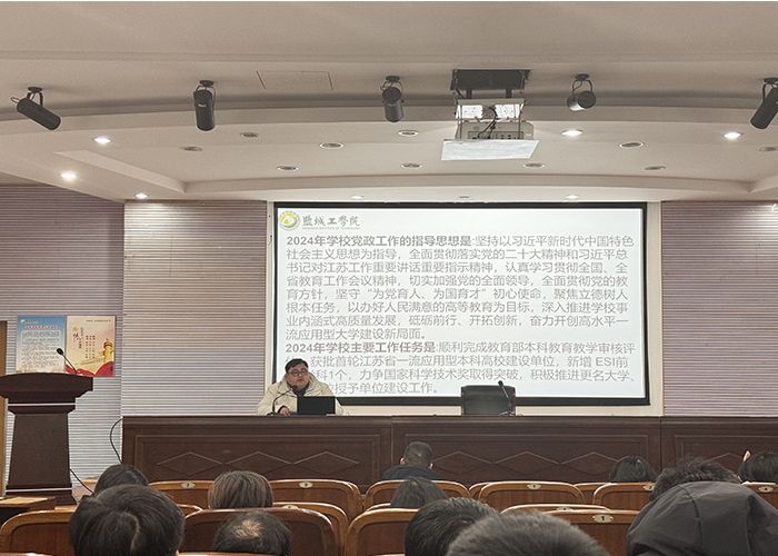 谷伟传达了学校党委四届三次全委(扩大)会暨五届四次教职工代表大会的会议精神,对学校2023年秋学期党政工作总结和2024年春学期党政工作要点进行了解读。他指出,会议为学校进一步深化改革、开展高水平一流应用型大学建设、服务地方战略和地方经济社会发展、培养德智体美劳全面发展的社会主义建设者和接班人,指明了努力方向、提供了重要指引、注入了强大动力,全校上下备受鼓舞、倍感振奋、倍增信心。