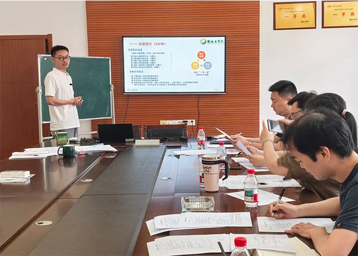 试讲教师均按照要求,提交教学简案、备课笔记、教学大纲、教学进度表等教学文件,并完成5分钟说课和15分钟现场授课。5位评委通过听课、点评和交流,从教学目标、教学内容、教学简案撰写、教学方法手段、教姿教态、课程思政、课件制作等方面进行全方位评价,并针对各位教师试讲表现提出改进意见:一是根据专业人才培养目标和毕业要求合理制定课程目标;二是课程思政应隐性融入专业课程教学;三是课件制作尽量图文并茂,减少大段文字;四是增加交流互动;五是加强板书规划;六是讲课注意衔接过渡,引导学生深入思考。根据评委评审,6位教师顺利通过说课和授课环节试讲。