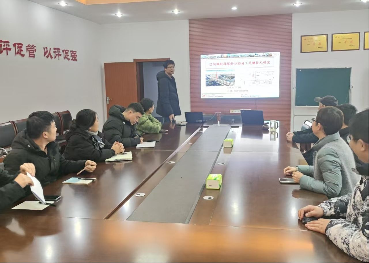 2025年11月6日,盐城工学院土木工程学院举 办了题为“空间倾斜独塔斜拉桥施工关键技术研究”的专题报告会。本次报告由石飞停老师主讲,吸引了众多师生参与,系统展示了我校在复杂异形桥梁施工技术领域的深入研究成果。