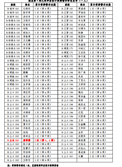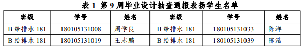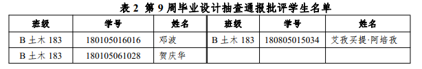 下列同学(表2所示)在本周抽查中,毕业设计计算进度不符合任务书要求,特予以通报批评。