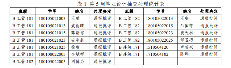 根据我院《关于开展2022届毕业设计(论文)一周一查一通报的通知》(盐工土木〔2022〕6号)文件要求,学院于本学期第5周周四~周五组织了现场抽查工作,重点检查毕业设计前期工作进展。现将具体抽查情况通报如下。