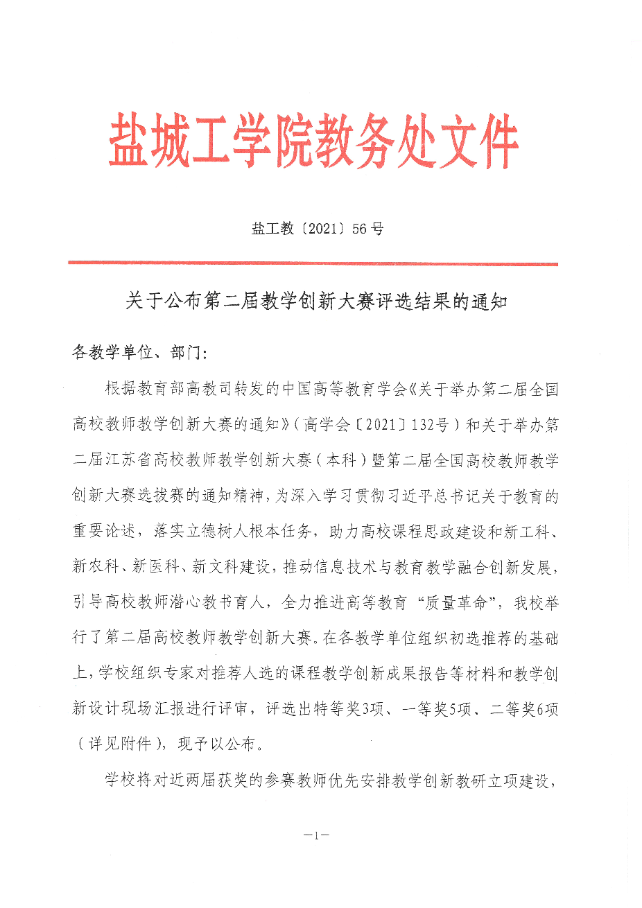 近日,盐城工学院举行了第二届高校教师教学创新大赛,经过校级专家组对参赛教师课程教学创新成果报告等材料、教学创新设计现场汇报情况进行综合评审,我院赵永东教授脱颖而出,其主讲的“房屋建筑学”荣获特等奖。