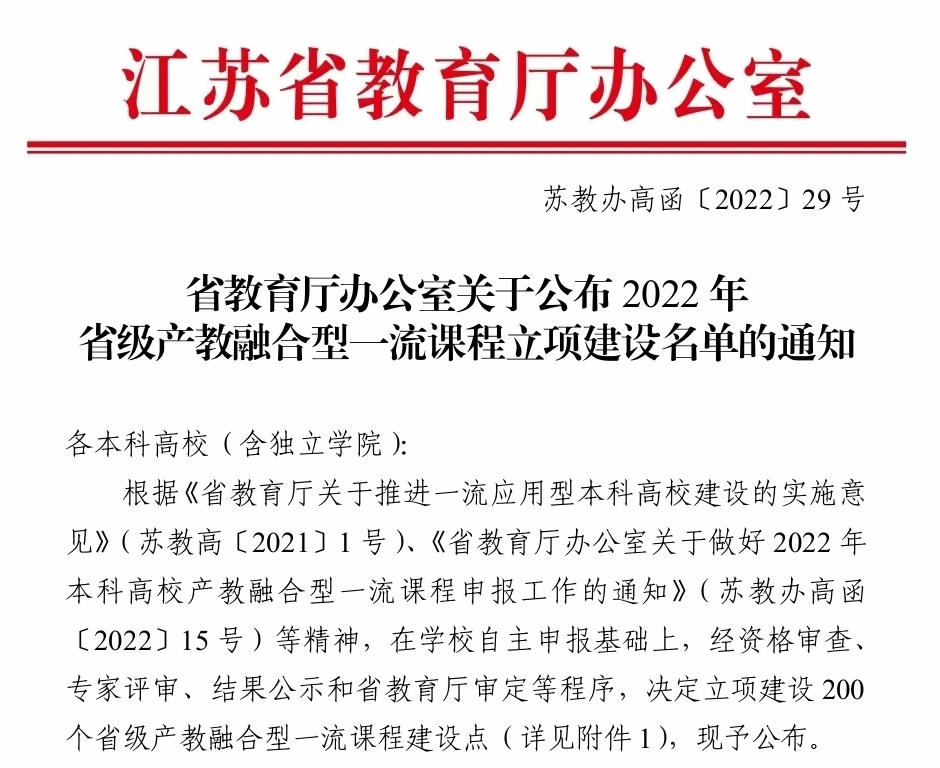 近日,江苏省教育厅公布2022年省级产教融合型一流课程立项建设名单,由我院王进教授、中铁四局二公司毛龙(江苏省产业教授)共同负责的《BIM技术及其工程应用》获批江苏省产教融合型一流课程立项建设。