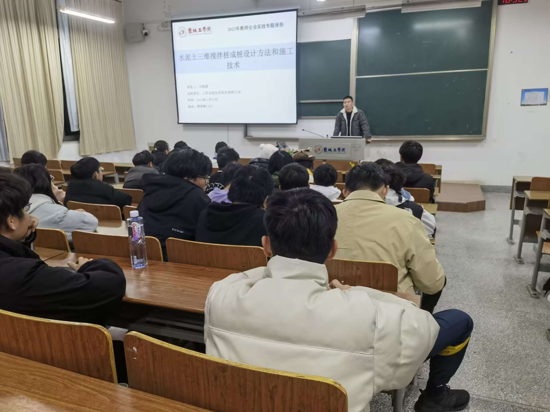 11月16日,地下工程系刘振建博士以城市地下空间工程专业课程教学为背景,结合企业实践经历,在博学楼C203作题为“水泥土三维搅拌桩成桩设计方法和施工技术”实践报告,B城市211班全体学生参加了此次报告会。