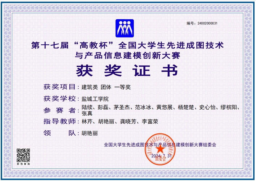 土木工程学院对参加此次比赛高度重视,从校赛选拔到省赛准备,再到全国总决赛的全力冲刺,为参赛师生提供了全方位的保障和服务。土木工程学院于4月份组织校赛,在全院范围进行择优选拔,由胡艳丽、林芹、龚晓芳等老师对学生进行精准指导,参赛学生不仅巩固了工程图学基础知识,还积极学习新技术、新技能,全面提升自己的实践创新能力与综合素质,不断增强自己的综合能力和竞争力。在5月28日第四届江苏省大学生先进成图技术与产品信息建模创新大赛中,以全省第三名的成绩获团体一等奖,成功闯入全国总决赛。经过一个多月的暑假备赛,参赛学生凭借着坚韧不拔的毅力和对知识的执着追求,参赛团队一路过关斩将,最终凭借扎实的专业基础,敢于挑战、力争上游的奋进精神,最终取得优异佳绩,充分展示了土木工程学院学生扎实的专业基础。
