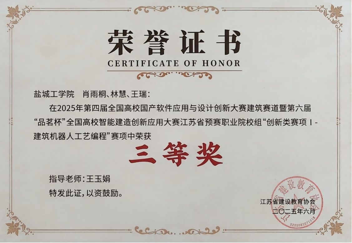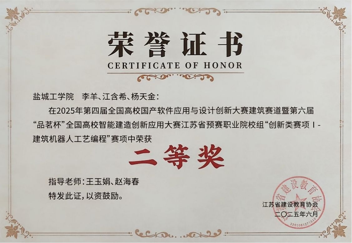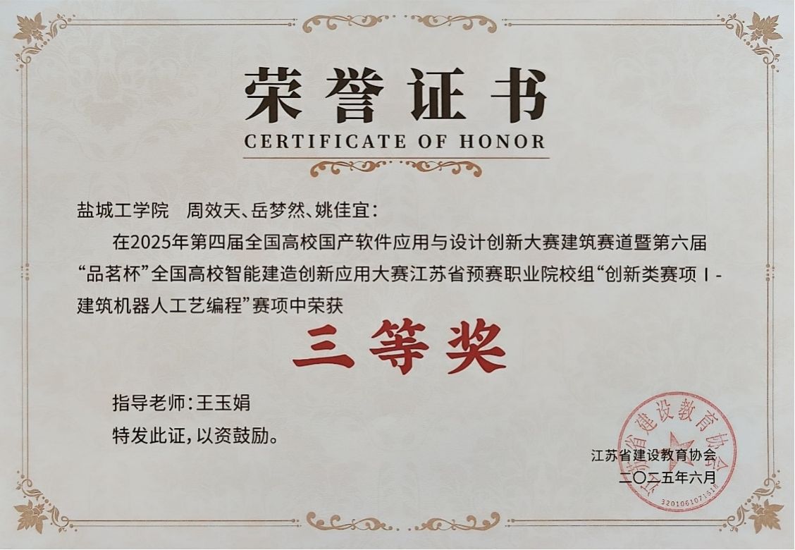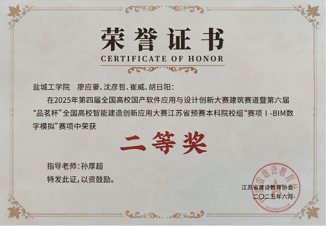近日,江苏省建设教育协会公布了第四届全国高校国产软件应用与创新大赛建筑赛道暨第六届“品茗杯”全国高校智能建造创新应用大赛江苏省省赛结果,土木工程学院积极组织队伍参赛,分别获江苏省一等奖3项、二等奖2项、三等奖3项。