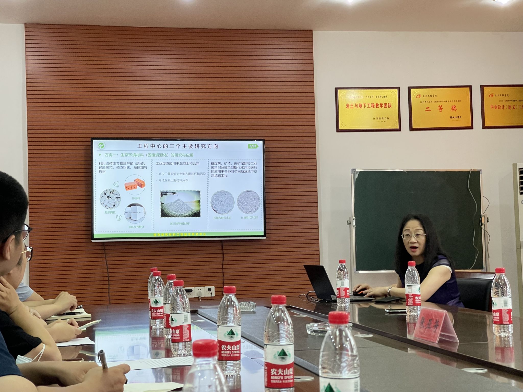 交流会期间,土木工程学院院长吴发红、材料科学与工程学院院长罗驹华分别介绍了学院的学科建设、师资队伍及研究平台等相关情况,对张教授的到来表示热烈欢迎。根据广州大学绿色建材工程技术研究中心的发展历程,张亚芳教授介绍了团队人才队伍、人才梯队架构与培养、团队主要研究方向及标志性成果等相关情况。针对纤维混凝土破裂机理、岩土工程灾害防治等研究成果以及团队研究方向,张亚芳教授作了题目为“绿色建材工程中心学科建设及研究进展”的报告,并基于新型绿色建筑材料研发、最新研究成果及成果转化效果等进行了交流。与会教师对报告内容反应热烈,就新型绿色建筑材料推广、实际工程应用等问题展开了充分讨论。交流会后,张亚芳教授参观了土木工程学院结构实验室,实验室主任杜玉冰、副主任宋爱明对结构实验室的建设情况作了详细介绍。张亚芳教授对土木学院的实验室建设工作给予了肯定,并给出了发展建议。张亚芳教授指出当前土木教育行业及工程建设领域都面临着发展转型,智能建造技术不断涌现,学院应了解企业需求,发挥专业学科优势,为地方社会发展培养新型专业人才。