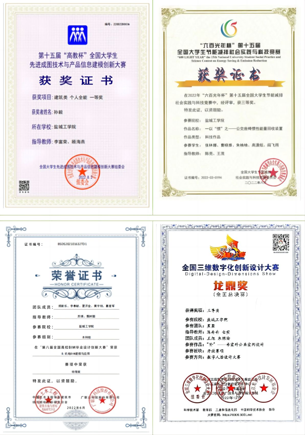 在四年的学习过程中所有学生均有机会参加各级别学科竞赛,如全国高校BIM毕业设计创新大赛、全国大学生节能减排社会实践与科技竞赛、“全国高等学校人工环境学科奖”专业基础竞赛、CAR-ASHRAE学生设计竞赛、大学生“挑战杯”比赛等。2022年在全国高校BIM毕业设计创新大赛获得国家级一等奖1项,二等奖1项;全国大学生节能减排社会实践与科技竞赛三等奖1项。