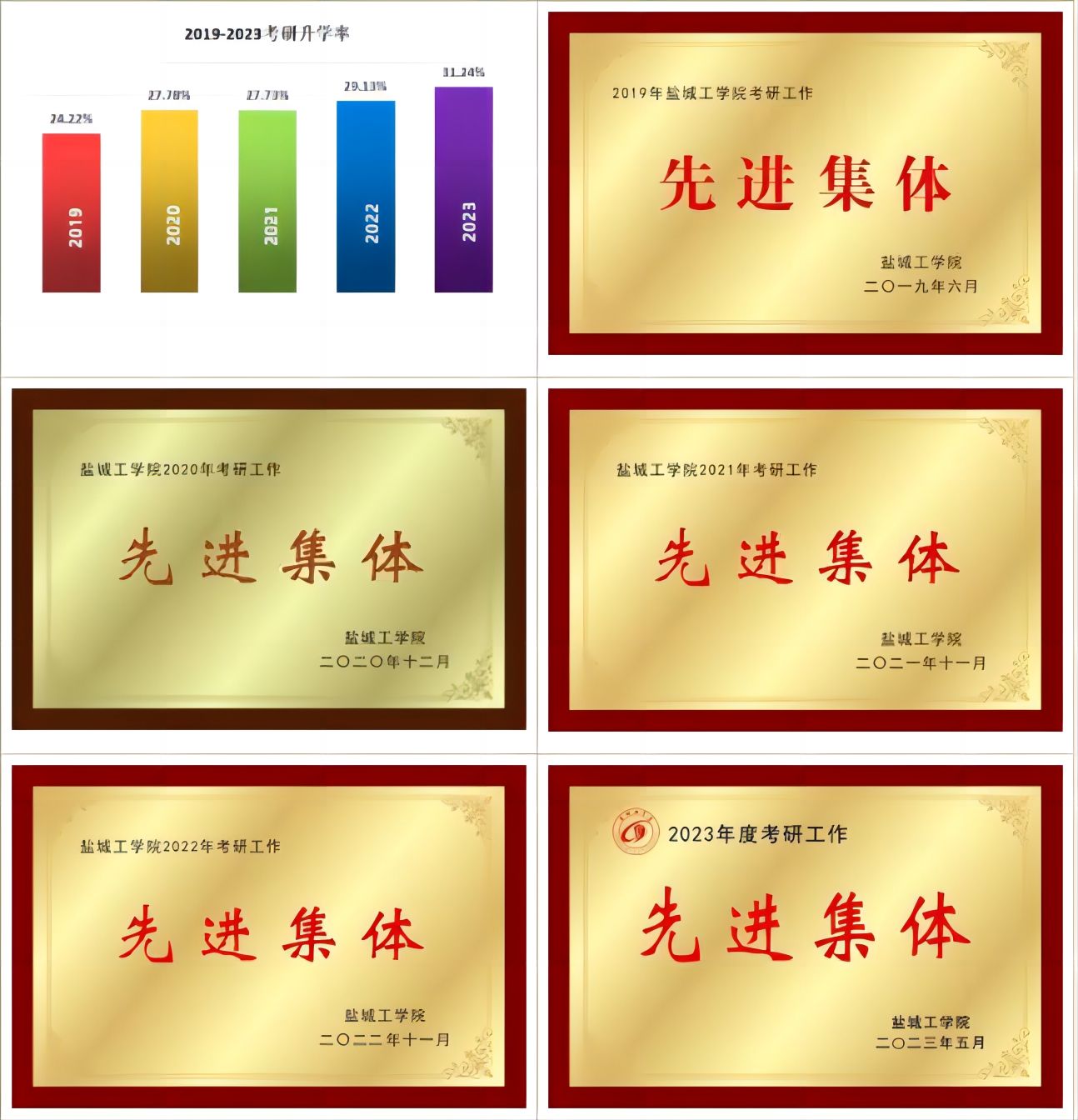 学院近五年的考研率稳中有升,连续五年获学校“考研工作先进集体”称号。2023届应届毕业生共有144人分别考取哈尔滨工业大学、苏州大学、河海大学、南京师范大学、悉尼大学等知名高校硕士研究生,考研录取率达31.24%。