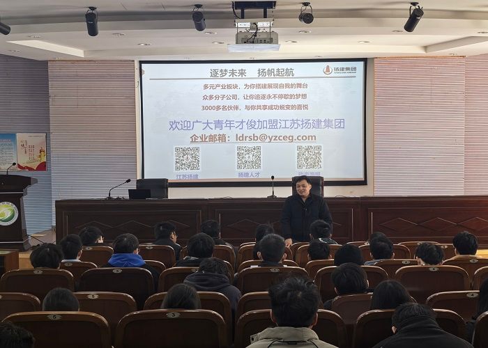 王林军结合扬建集团近年来招聘情况,分析了土建行业的就业形势,勉励同学们树立正确的择业观、就业观,抢抓秋招关键期,尽早谋划,合理定位,积极就业,在各自的岗位上实现自己的人生价值。他建议学生们在求职过程中要保持积极的心态,勇于面对挑战和困难,不断提升自己的综合素质和竞争力。
