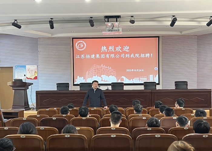 2023年10月25日上午,江苏扬建集团有限公司党委办公室主任、人力资源部部长卫喜亮应邀到我院开展2024届毕业生就业指导课,学院党委副书记陈广正、学工办负责人、毕业班辅导员、毕业生代表100余人参加。