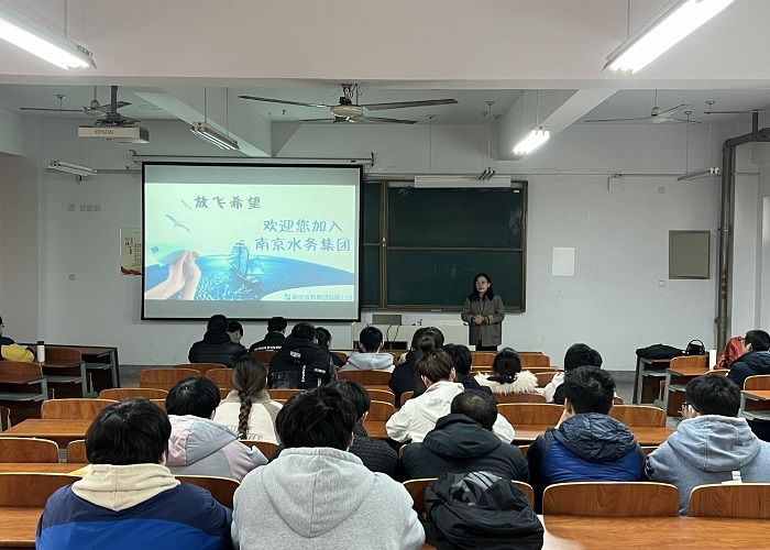 南京水务集团有限公司人力资源部负责人围绕集团业务及架构体系、人才培养模式、人才发展渠道、薪酬福利待遇等四个方面进行了宣讲,对同学们的疑问进行了进一步的交流。宣讲会后,进行了简历投递、笔试、面试等环节。